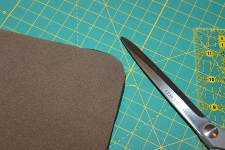 First, trim the corners on your fabric squares so they are rounded, as shown below.