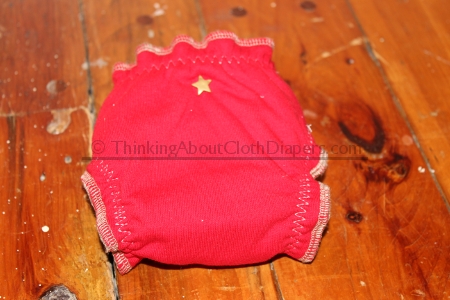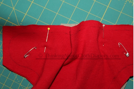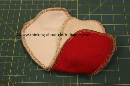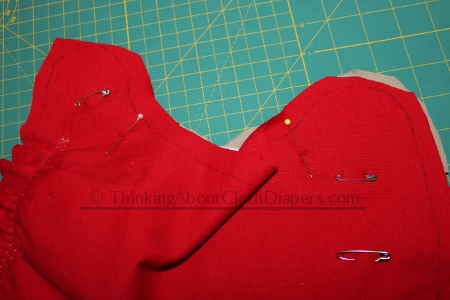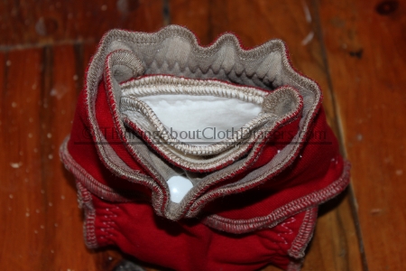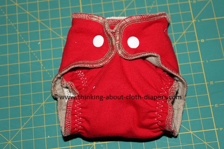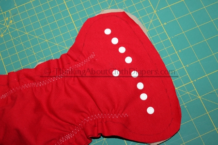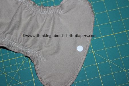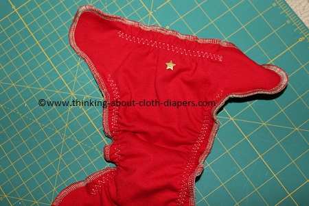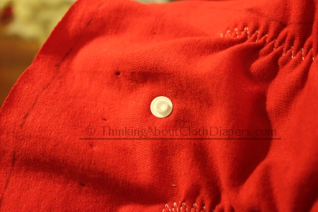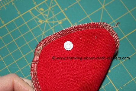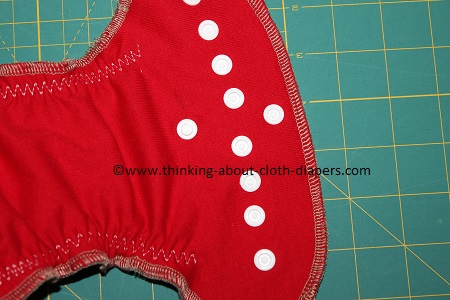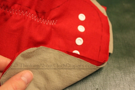 The photo below shows the snap in place. The red will go up against the inner layer of this diaper.