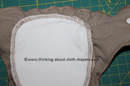 Here's a photo of the diaper from the top, showing the soakers snapped in. This diaper contains 12 layers of absorbent cotton knit, which is usually more than enough for a newborn!